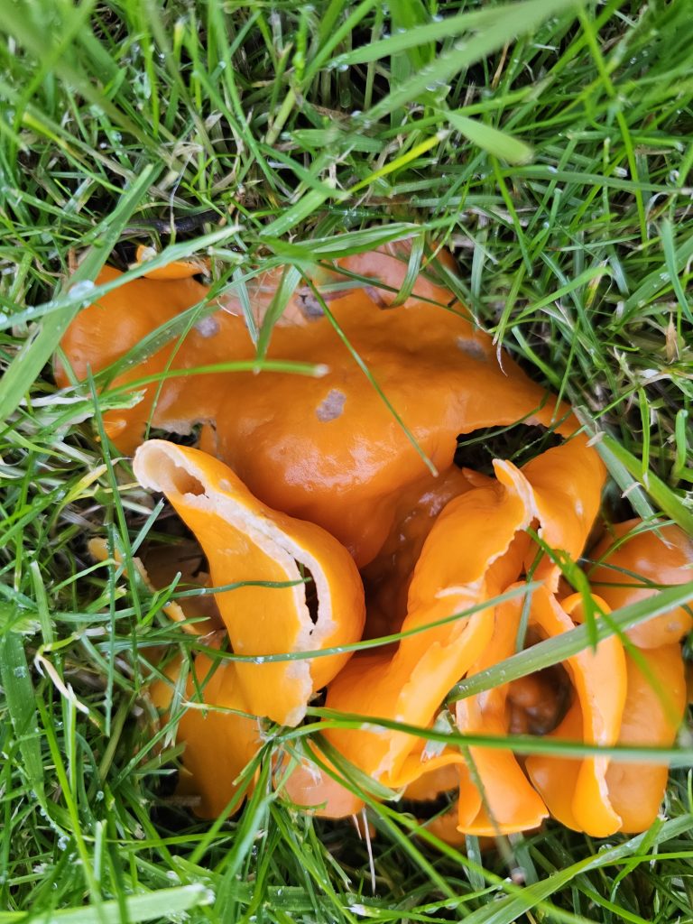 3rd Nov: A new one for me which google lens identified as the very aptly named Orange Peel Fungus (Aleuria aurantia).