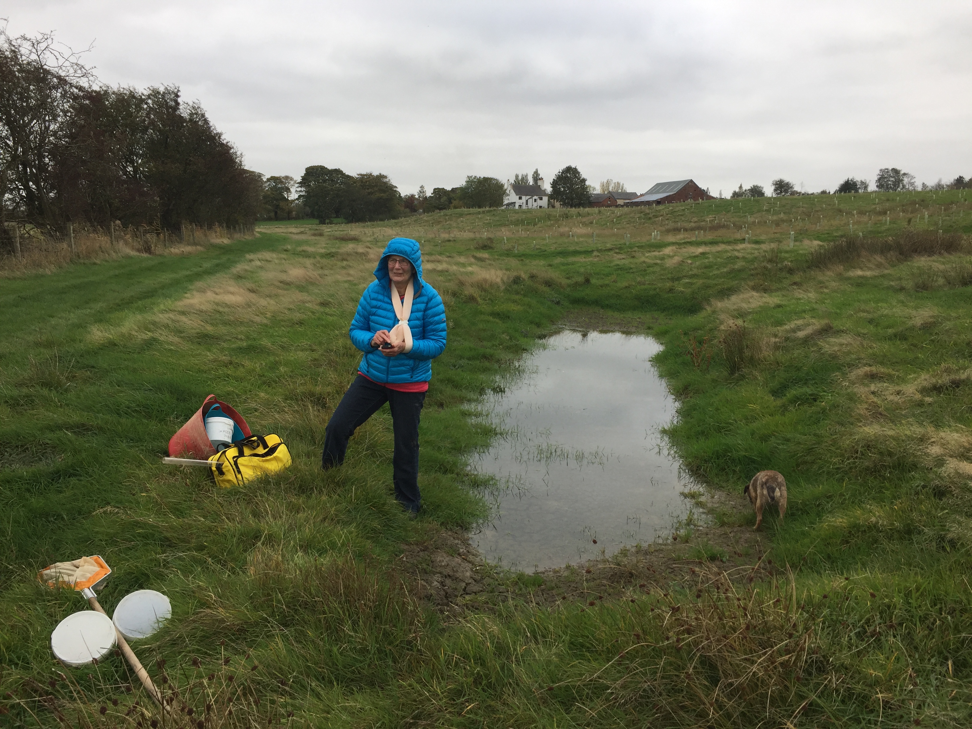 The (hopefully) annual audit of our farm ponds happened yesterday with pond experts Peter and Helen visiting along with Helen’s Mum on admin duties and Millie the dog.